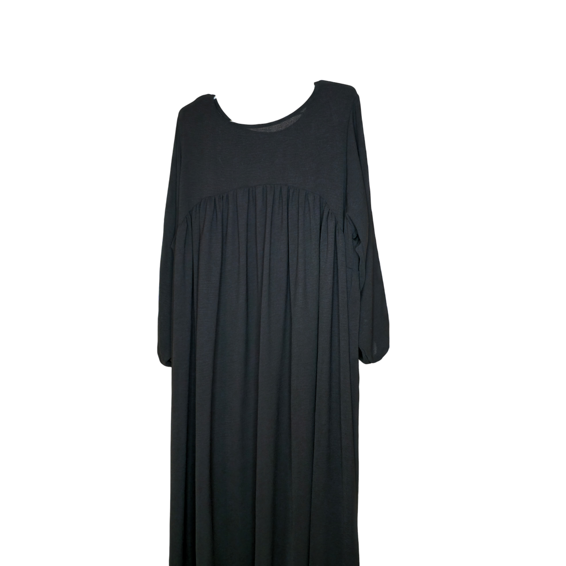 The Princess Abaya is made out of a lightweight jazz crepe fabric that falls beautifully. It does not have to be ironed before each wear and it is comfortable an everyday abaya. It is a one size abaya and it is very loose with a lot of material to enhance that flowy princess look. Due to the pleats around the bosom area it is flattering for different body types.