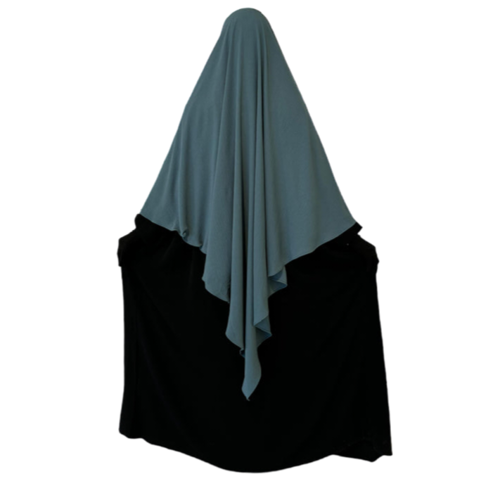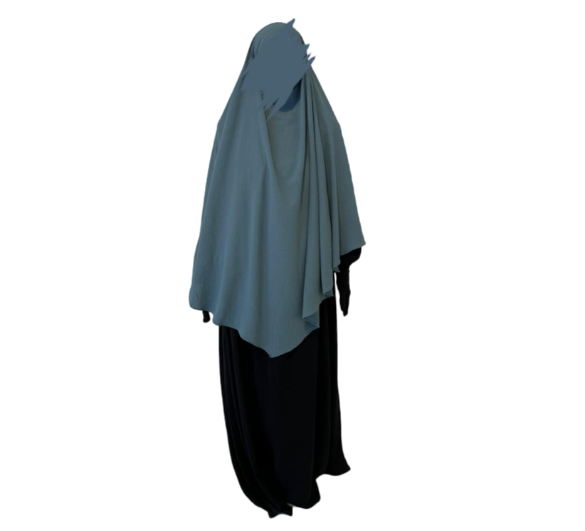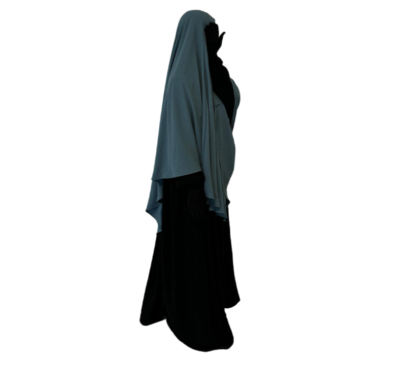 The Diamond Khimar is made from jazz crape fabric that sits comfortably around the face without slipping. It can be tied from the inside or outside, depending on what you prefer. It allows enough coverage for the front and back and is perfectly paired with the Princess Abaya.