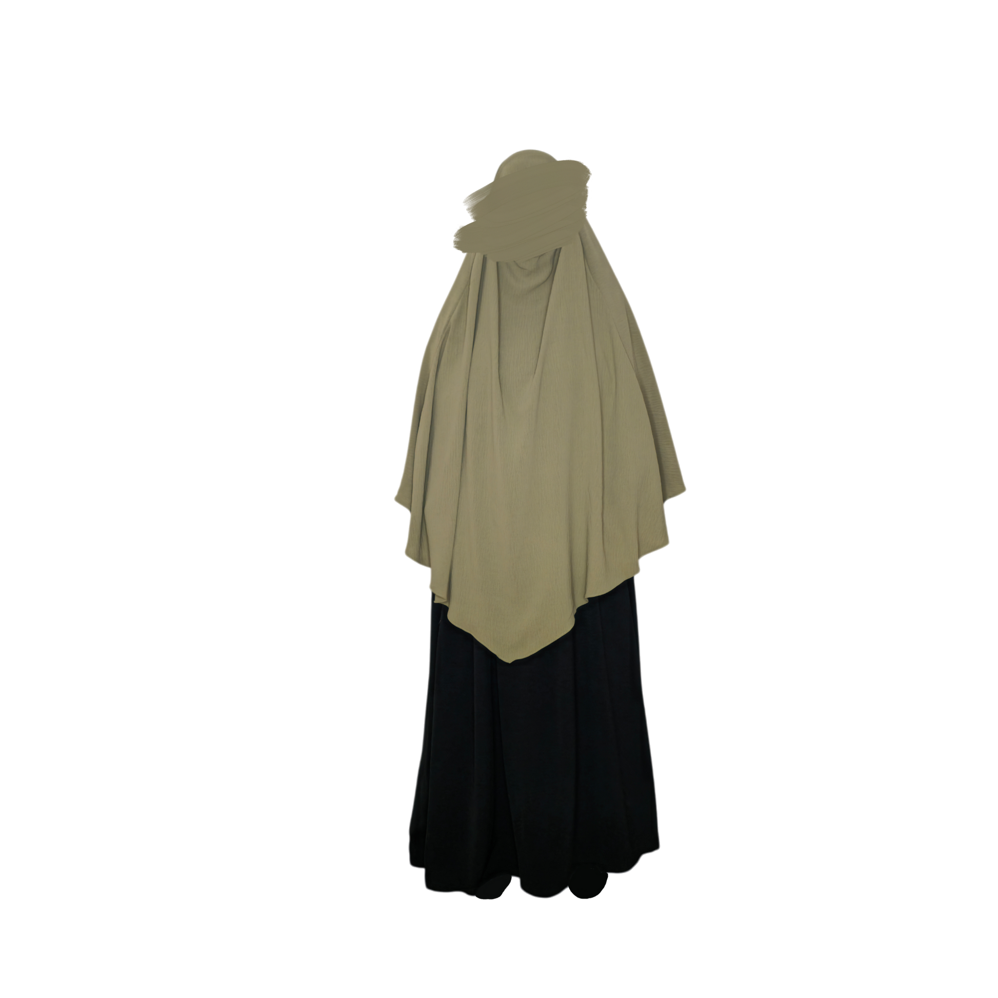 The Diamond Khimar is made from jazz crape fabric that sits comfortably around the face without slipping. It can be tied from the inside or outside, depending on what you prefer. It allows enough coverage for the front and back and is perfectly paired with the Princess Abaya.