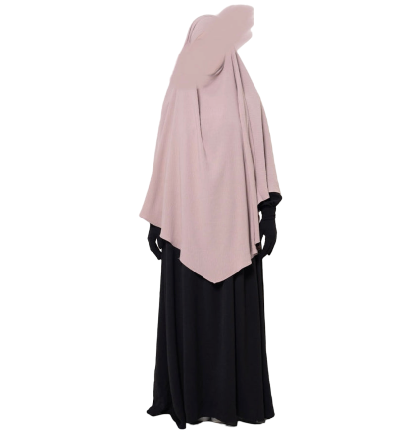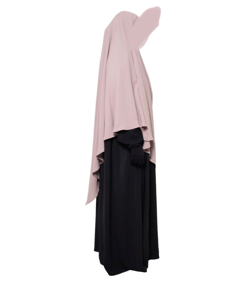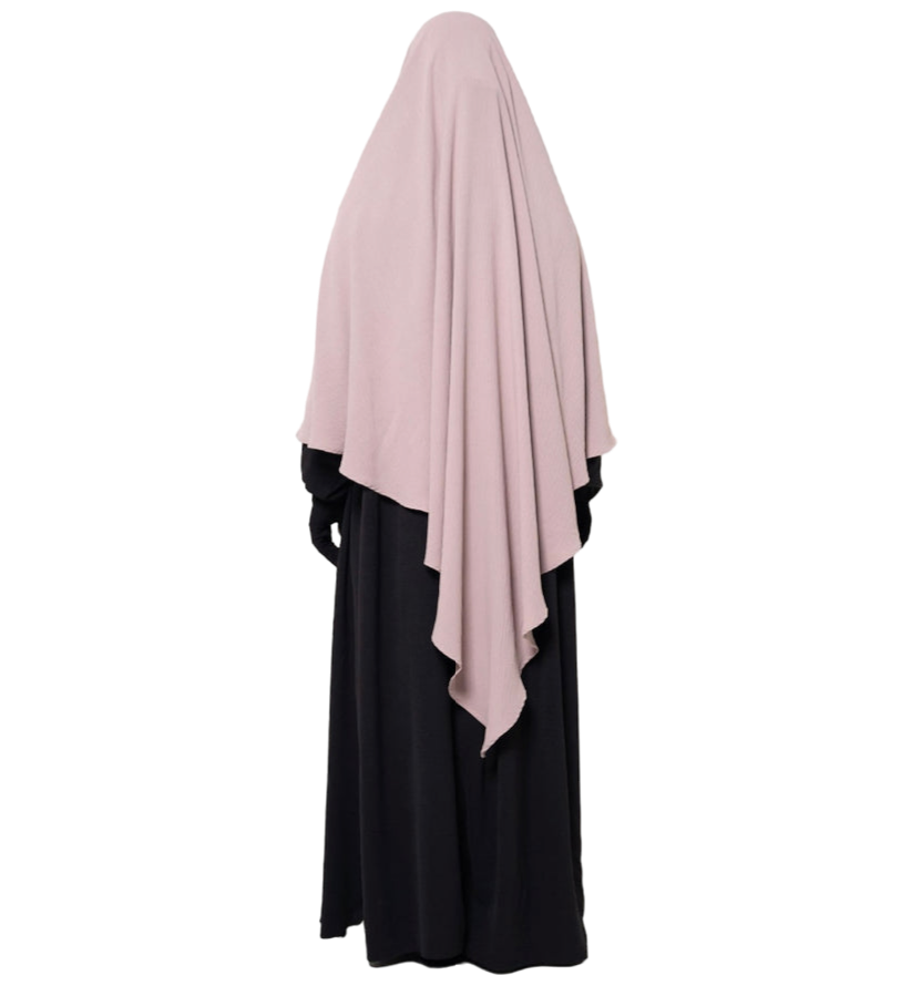The Diamond Khimar is made from jazz crape fabric that sits comfortably around the face without slipping. It can be tied from the inside or outside, depending on what you prefer. It allows enough coverage for the front and back and is perfectly paired with the Princess Abaya.