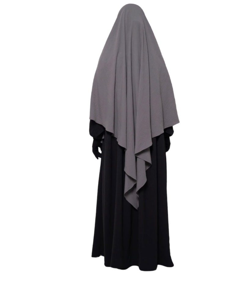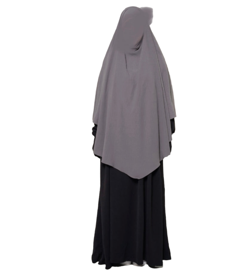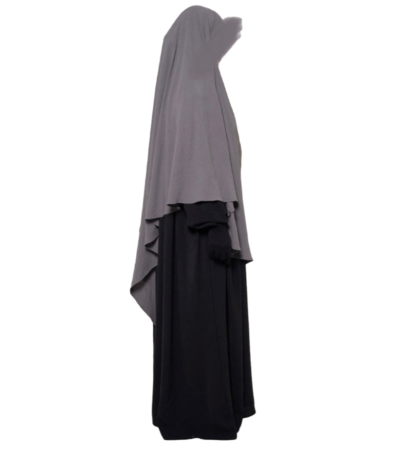 The Diamond Khimar is made from jazz crape fabric that sits comfortably around the face without slipping. It can be tied from the inside or outside, depending on what you prefer. It allows enough coverage for the front and back and is perfectly paired with the Princess Abaya.