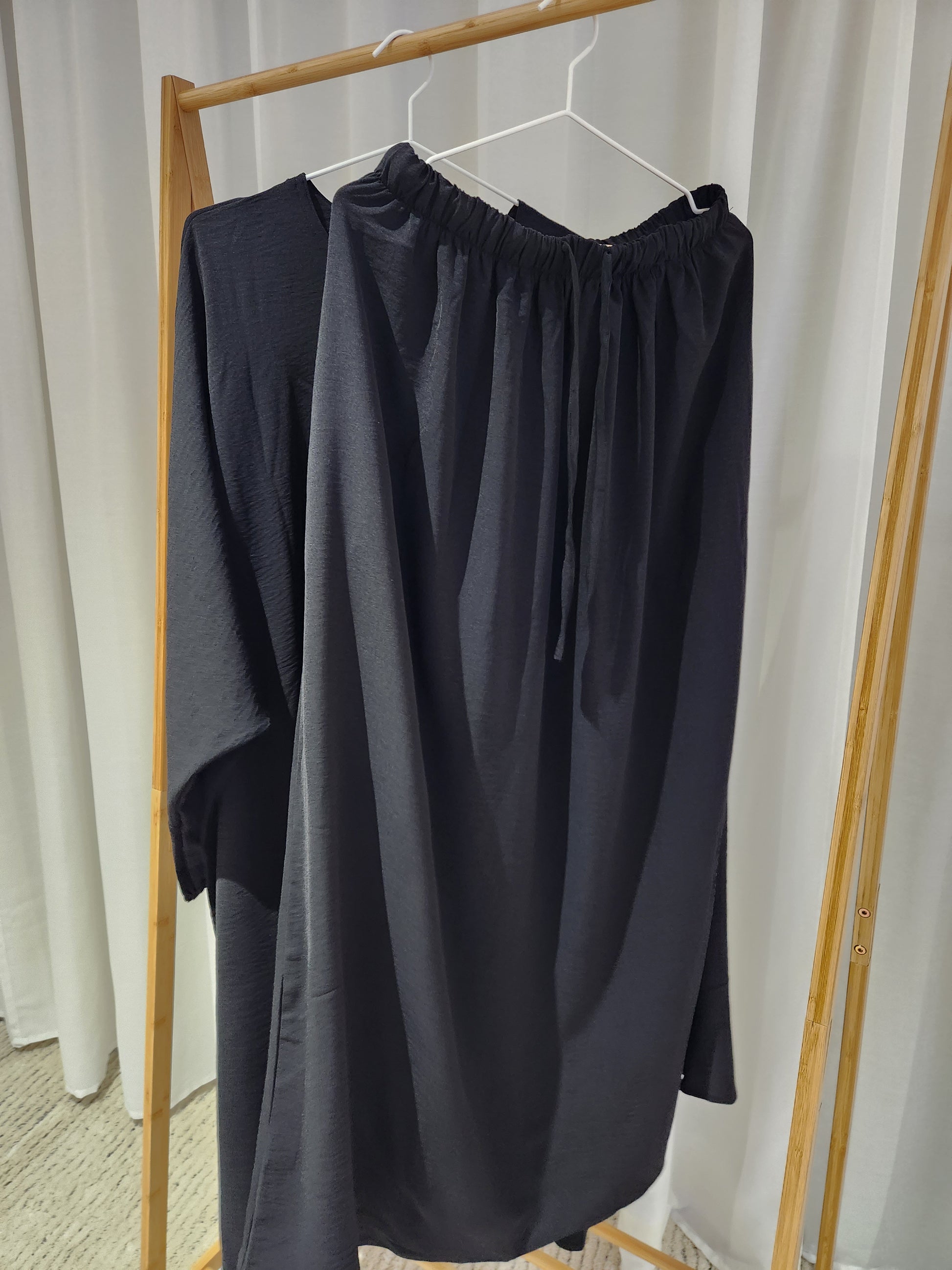 Meet our new Double Veil abaya, with double the coverage hence the name. It consists of a skirt with drawstrings so it can be fitted according to your size, as well as a side pocket to store your phone throughout the day!